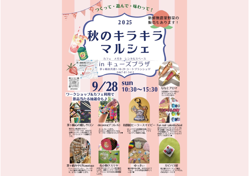 9月28日(日)10:30~15:30に開催されるマルシェ「秋のキラキラマルシェ」にデコレルが出店です🍂✨
